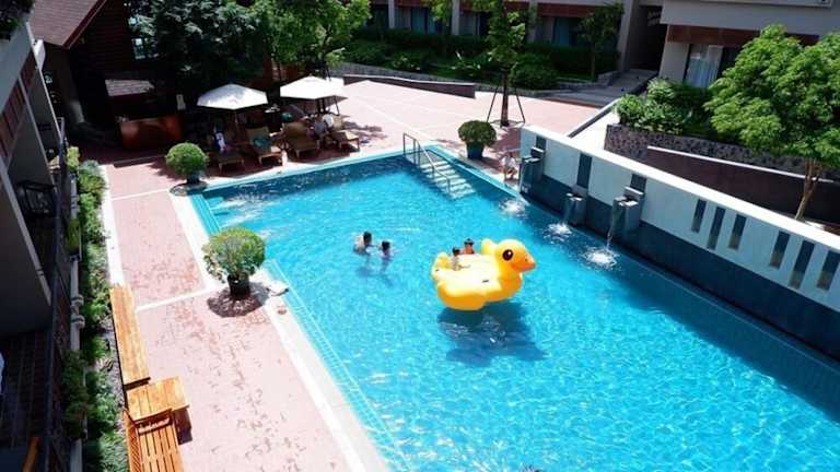 Das Resort verfügt über einen Außenpool, der ideal zum Schwimmen und Entspannen ist. Für diejenigen, die fit bleiben möchten, steht auch ein Fitnesscenter zur Verfügung. Der Garten des Resorts bietet eine grüne Oase zum Entspannen und Genießen der Natur. Kostenfreie Privatparkplätze stehen den Gästen zur Verfügung.