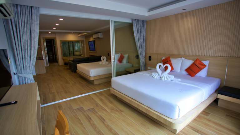 Die klimatisierten Zimmer im Hotel bieten Aussicht auf die Stadt oder das Phuket-Gebirge. Jedes Zimmer ist mit Kabel-TV, einem Kühlschrank und einer Minibar ausgestattet. Die modernen Badezimmer verfügen über verschiedene Pflegeprodukte. Die Unterkunft hat auch Nichtraucherzimmer und Familienzimmer im Angebot.