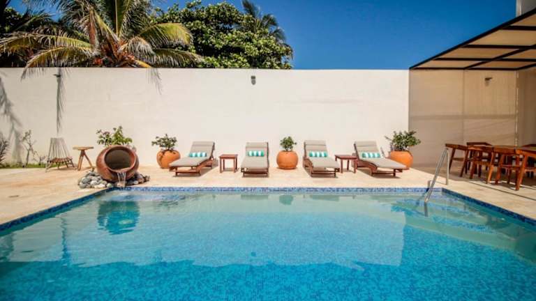 Das Hotel Playanet in Chelem ist die perfekte Unterkunft für einen entspannten Strandurlaub. Mit einem Außenpool, einem eigenen Strandbereich und einem wunderschönen Meerblick bietet das Hotel alles, was Sie für einen unvergesslichen Aufenthalt benötigen. Die Villa ist geräumig und gut ausgestattet, mit einer voll ausgestatteten Küche und komfortablen Schlafzimmern. Genießen Sie die Sonne auf der Terrasse oder erkunden Sie die Umgebung, einschließlich des nahegelegenen Strandes Chelem und des Museums Mundo Maya.
