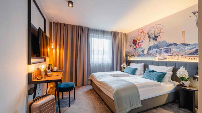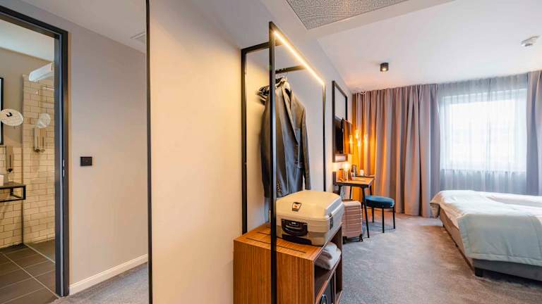 Die modern gestalteten Zimmer bieten eine komfortable Ausstattung und eine angenehme Atmosphäre zum Wohlfühlen. Bequeme Betten, schallisolierte Fenster, ein praktischer Arbeitsplatz sowie kostenfreies Highspeed-WLAN sorgen für einen entspannten Aufenthalt. Alle Zimmer verfügen über ein stilvolles Badezimmer mit Walk-in-Dusche, Föhn und Kosmetikspiegel. Durchdachte Details wie USB-Steckdosen runden den zeitgemäßen Komfort ab.