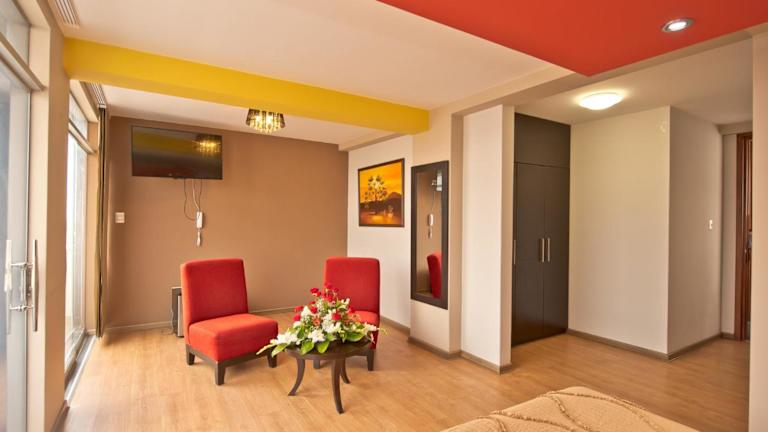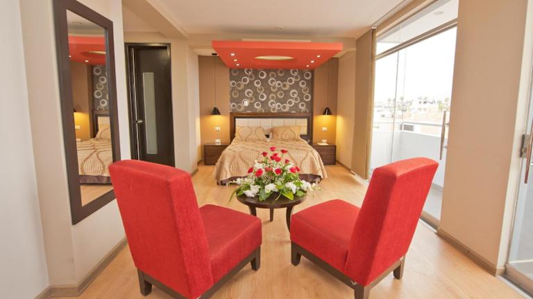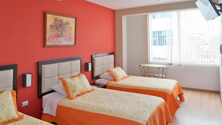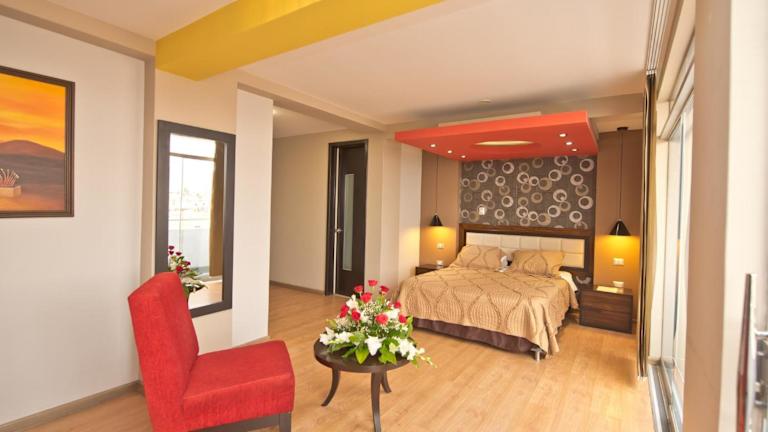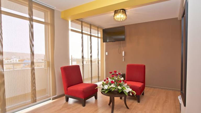 Das Plaza Sur Hotel & Suites in Tacna bietet eine komfortable Unterkunft in idealer Lage direkt gegenüber dem Einkaufszentrum Bolognesi. Das Hotel verfügt über moderne Zimmer und Suiten, die mit allen Annehmlichkeiten ausgestattet sind. Genießen Sie das kostenfreie WLAN und das tägliche Frühstücksbuffet. Das Hotel bietet auch Tagungsräume, eine 24-Stunden-Rezeption und einen Tourenschalter. Parkplätze stehen nach vorheriger Reservierung zur Verfügung. Die Unterkunft befindet sich nur wenige Minuten vom Stadtzentrum und dem Flughafen entfernt.