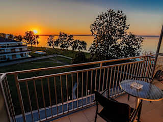 Die Zimmer im Plazs Hotel Siófok verfügen über einen Kleiderschrank, einen Balkon mit Seeblick, ein eigenes Badezimmer, einen Flachbild-TV sowie Bettwäsche und Handtücher.
