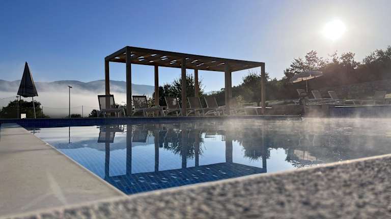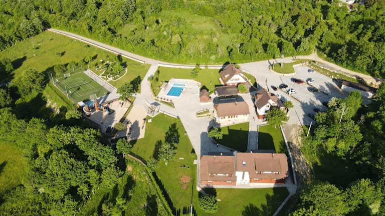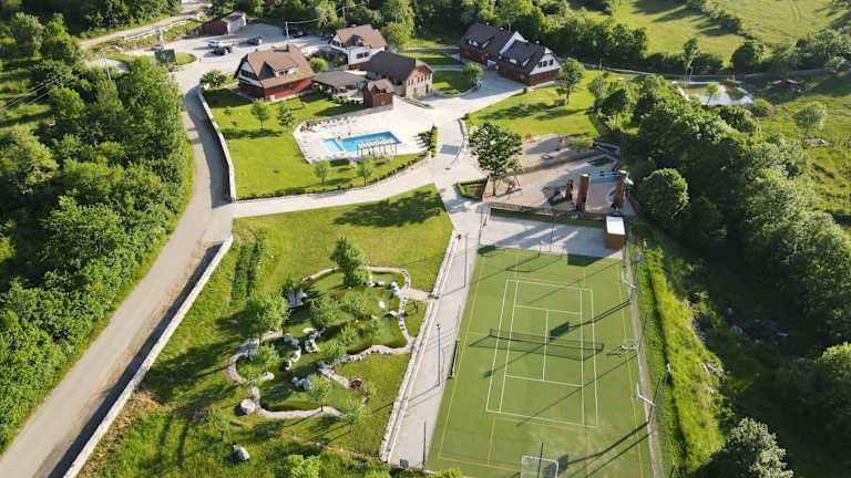 Sehr schöne Anlage mit weitem Blick in die umliegende Landschaft. Alles insgesamt sehr sauber, modern und ansprechend. Insbesondere für Familien durch den Pool und den großen Spielplatz super geeignet, um sich nach Wanderungen durch den Nationalpark Plitvick Jezera und die Umgebung zu entspannen.