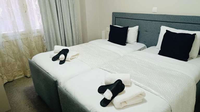 Die Ferienwohnung verfügt über zwei Schlafzimmer, ein Wohnzimmer, eine voll ausgestattete Küche und zwei Badezimmer mit Dusche sowie kostenlosen Pflegeprodukten. In der Unterkunft stehen Handtücher und Bettwäsche zur Verfügung. Zudem sind die Zimmer klimatisiert und schallisoliert.