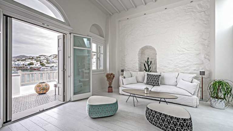 Das Pnoe Hotel ist eine ideale Wahl für Reisende, die im Herzen von Mykonos-Stadt übernachten möchten. Mit komfortablen Unterkünften, einer Gemeinschaftslounge, einer Terrasse und einer Bar bietet das Hotel alles, was Sie für einen angenehmen Aufenthalt benötigen. Genießen Sie den Blick auf die Stadt und den Strand Agia Anna, der nur 100 m entfernt liegt. Das Hotel bietet auch kostenfreies WLAN und eine Gemeinschaftsküche für Ihre Bequemlichkeit. Die Villa im Hotel ist klimatisiert und verfügt über 3 Schlafzimmer, ein Wohnzimmer, eine voll ausgestattete Küche und 3 Badezimmer. Ein kontinentales Frühstück wird Ihnen in der Villa serviert. Wenn Sie die Umgebung erkunden möchten, können Sie Fahrräder oder Autos im Hotel mieten. Beliebte Strände wie Agios Charalabos, Megali Ammos und Klein-Venedig sind ebenfalls in der Nähe. Der Flughafen Mykonos ist nur 3 km entfernt, und das Hotel bietet auch einen kostenpflichtigen Flughafentransfer.