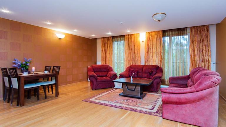 Das Po Jūros Banga in Palanga ist der ideale Ort für einen erholsamen und angenehmen Aufenthalt. Mit seiner Nähe zum Botanischen Garten und dem Bernsteinmuseum bietet das Hotel eine fantastische Lage. Die Zimmer sind komfortabel und gut ausgestattet, mit einem Balkon und einem schönen Blick auf den Garten. Das Hotel bietet auch zusätzliche Annehmlichkeiten wie eine Sauna und einen Whirlpool, sowie einen Kinderspielplatz für die kleinen Gäste. In der Umgebung gibt es zahlreiche Aktivitäten, die Sie unternehmen können, und auch der Strand ist nur einen kurzen Spaziergang entfernt.