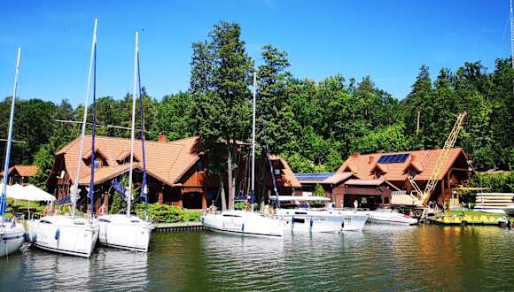 Genießen Sie einen entspannten Aufenthalt im POD DEBEM Kompleks Zeglarsko-Rekreacyjny in Ruciane-Nida. Das Hotel bietet komfortable Unterkünfte mit kostenfreiem WLAN und TV sowie eine Bar und einen eigenen Strandbereich. Entspannen Sie auf der Sonnenterrasse oder im Garten mit Grillmöglichkeiten. In der Umgebung können Sie wandern und angeln. Der Tropikana Aqua Park und das Seglerdorf sind ebenfalls in der Nähe.