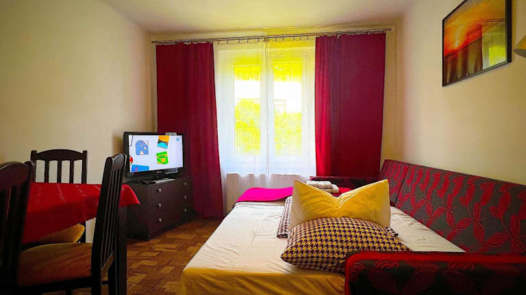 Das Apartment im Pod Náchodským zámkem verfügt über ein gemütliches Schlafzimmer, ein geräumiges Wohnzimmer mit einem Flachbild-TV sowie eine voll ausgestattete Küchenzeile mit einer Mikrowelle. Das Badezimmer bietet alle Annehmlichkeiten, die Sie für einen komfortablen Aufenthalt benötigen. Das Apartment bietet auch kostenfreies WLAN und einen wunderschönen Blick auf den Garten.