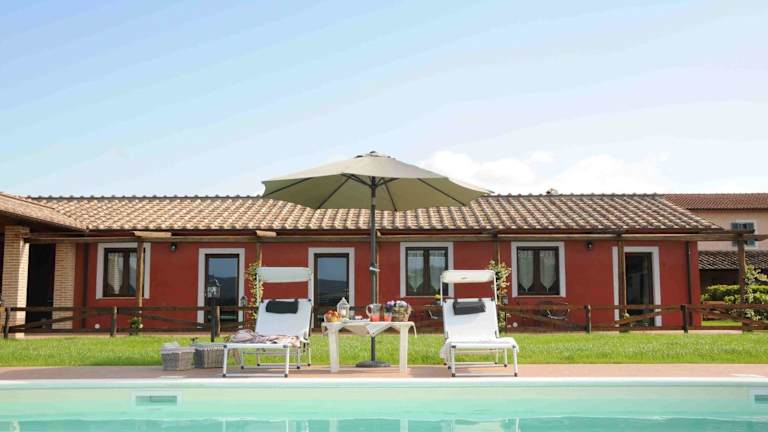 Das Podere Calledro in San Liberato ist der perfekte Ort für einen entspannten und authentischen Urlaub in der Natur. Die Apartments zur Selbstverpflegung bieten allen Komfort, den Sie benötigen, und die Anlage verfügt über einen Außenpool und einen schönen Garten mit Grillmöglichkeiten. Genießen Sie die landwirtschaftlichen Produkte wie Kichererbsen, Dinkel, Linsen und Honig, die vor Ort hergestellt werden. Es gibt auch viele Aktivitäten wie Tischfußball, Reiten und die Möglichkeit, E-Bikes zu mieten. Das Podere Calledro ist ein idealer Ausgangspunkt, um die Umgebung zu erkunden, mit Narni, Viterbo und den Marmore-Wasserfällen in der Nähe.