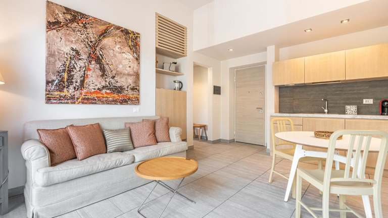 Die Ferienwohnung umfasst 1 Schlafzimmer, ein Wohnzimmer und eine voll ausgestattete Küchenzeile, die mit einem Kühlschrank und einer Kaffeemaschine ausgestattet ist. Des Weiteren stehen 1 Badezimmer mit einem Bidet und einer Dusche zur Verfügung. Handtücher und Bettwäsche werden bereitgestellt. Die Unterkunft verfügt über Klimaanlage und einen Balkon.