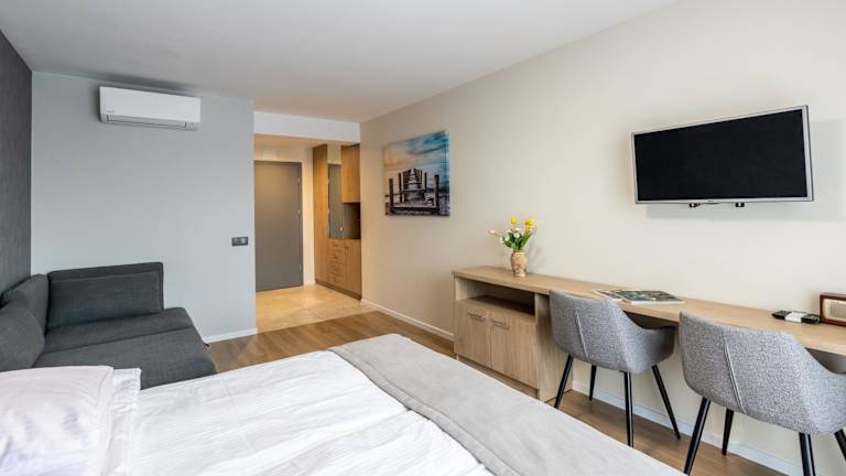 Jede Wohneinheit in der Unterkunft verfügt über ein eigenes Badezimmer mit Dusche, Klimaanlage, einen Flachbild-TV sowie einen Kühlschrank. Die Ausstattung umfasst auch Heizung und WLAN. Die Zimmer sind für Nichtraucher ausgelegt.