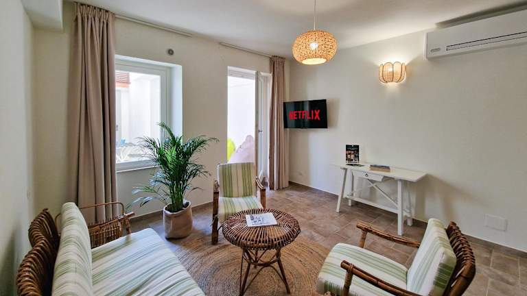 Die Zimmer sind mit einem Kleiderschrank, einem Flachbild-TV, Klimaanlage und einem eigenen Badezimmer mit Bidet sowie kostenfreien Pflegeprodukten ausgestattet. In den Wohneinheiten sind Bettwäsche und Handtücher vorhanden. Ausgewählte Zimmer verfügen zusätzlich über einen Balkon.