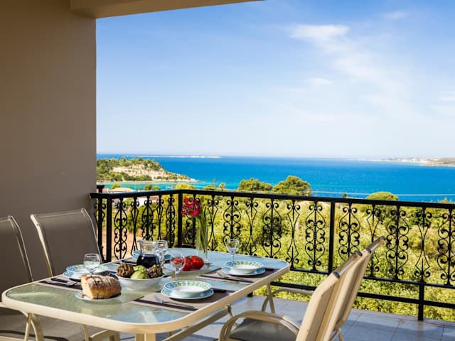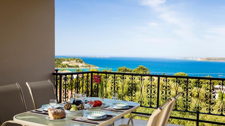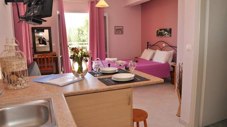 Die Apartments sind mit einem eigenen Badezimmer, einem Sitzbereich, einem Kühlschrank, einem Ofen und einem Satelliten-Flachbild-TV ausgestattet. Jeder Raum bietet einen Balkon mit Blick auf die Berge. Reinigung erfolgt täglich und Bettwäsche sowie Handtücher werden zweimal pro Woche gewechselt.