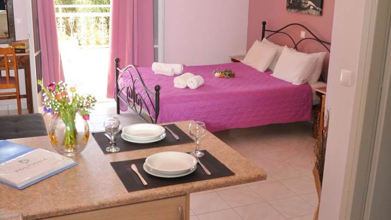 Polymnia Apartments Lassi bietet eine Terrasse mit Stadtblick, einen Garten, einen Außenpool sowie ein Restaurant. Die Unterkunft garantiert kostenloses WLAN und ermöglicht einen Blick auf das Meer.
