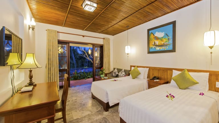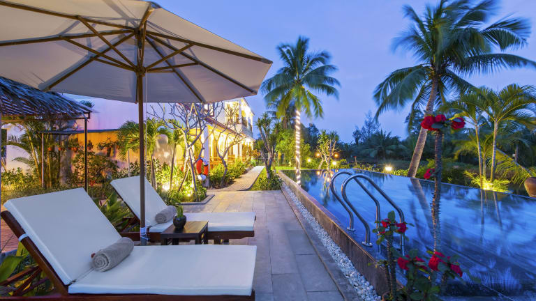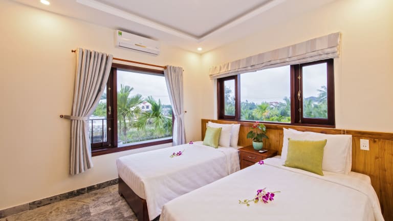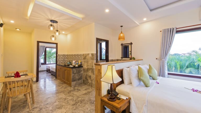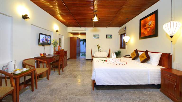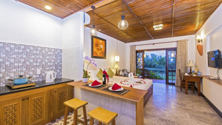 Die Pomelo Garden Boutique Villa ist eine charmante Unterkunft, die von üppiger tropischer Vegetation umgeben ist und Ihnen einen erholsamen Aufenthalt in Hoi An bietet. Neben kostenfreiem WLAN und Fahrrädern haben Sie die Möglichkeit, in der Umgebung zu angeln und einen Tag mit dem Eigentümer zu verbringen. Die Bungalows sind komfortabel und bieten eine Terrasse, einen Sitzbereich, einen Flachbild-Kabel-TV, einen Wasserkocher und eine Minibar. Das freundliche Personal am Tourenschalter steht Ihnen zur Verfügung, um Ihnen bei der Organisation von Massagen oder bei der Planung von Ausflügen zu helfen.