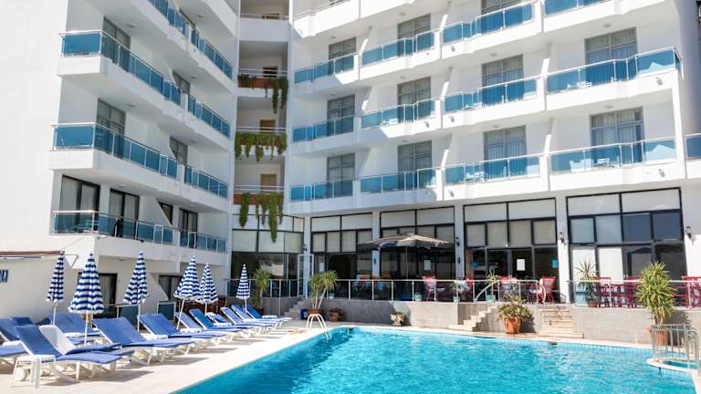 Das Ponz Hotel befindet sich in Kuşadası, nur 100 m vom Strand Ladies entfernt. In der Umgebung finden Sie verschiedene Einkaufsmöglichkeiten, Restaurants und Unterhaltungsmöglichkeiten. Der Sand-Kiesstrand Kusadası ist ebenfalls nur 500 m entfernt. Die Entfernung zum Flughafen Adnan Menderes beträgt etwa 45 km.