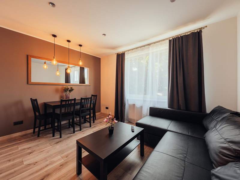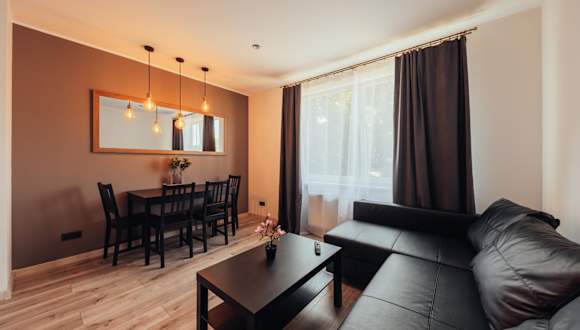 Die Poorbaltics Apartments bieten komfortable Unterkünfte mit einem Schlafzimmer. Jedes Apartment verfügt über ein Wohnzimmer mit einem Flachbild-TV, in dem Sie sich entspannen und Ihre Lieblingssendungen genießen können. Die voll ausgestattete Küche bietet Ihnen die Möglichkeit, Ihre eigenen Mahlzeiten zuzubereiten, während Handtücher und Bettwäsche im Apartment gestellt werden. Das Apartment bietet Ihnen somit alles, was Sie für einen angenehmen Aufenthalt benötigen.