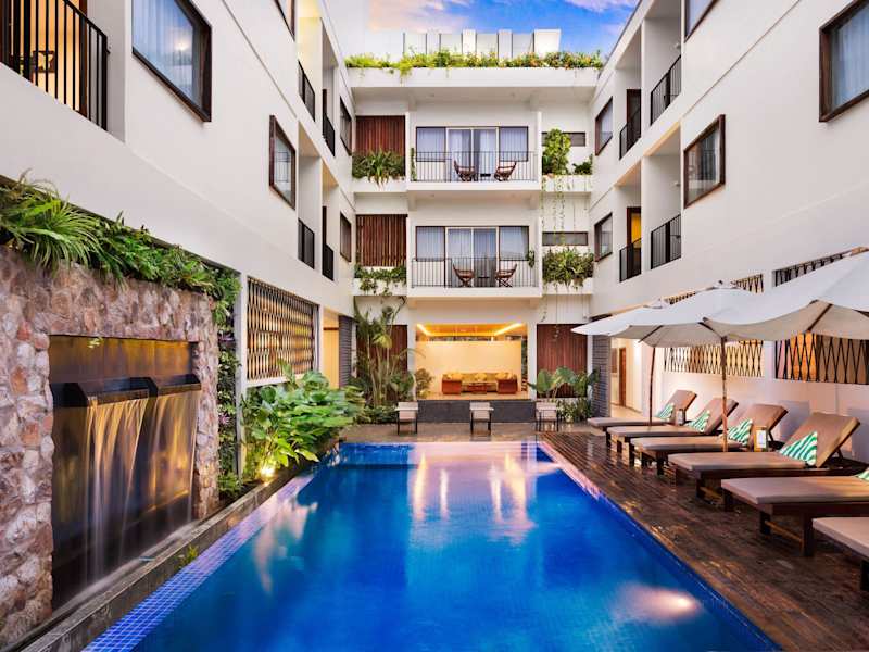 Das Hotel Seasons d'Angkor verfügt über einen Außenpool und eine Poolbar, wo Sie sich entspannen und erfrischen können. Für Aktivitäten in der Umgebung bietet das Hotel einen Fahrradverleih, um die Umgebung zu erkunden. Darüber hinaus bietet das Hotel auch Wellnessangebote wie Massagen an, um Körper und Geist zu verwöhnen.