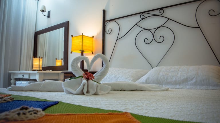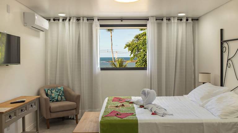 Die 17 Zimmer des Hotels verfügen über eine moderne Einrichtung und sind mit Annehmlichkeiten wie einem LCD-Satelliten-TV, kostenfreiem WLAN und einem eigenen Badezimmer ausgestattet. Jedes Zimmer hat zudem einen privaten Balkon mit entweder einem Panoramablick auf das Meer oder den Garten. Einige Zimmer verfügen auch über einen Essbereich.