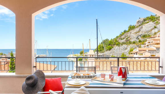 Die Ferienwohnung besteht aus 2 Schlafzimmern und 2 Badezimmern. Zur weiteren Ausstattung gehören Bettwäsche, Handtücher, ein Flachbild-TV sowie ein Essbereich. Eine voll ausgestattete Küche ist ebenfalls Teil des Angebots. Zudem verfügt die Unterkunft über eine Terrasse mit Meerblick.
