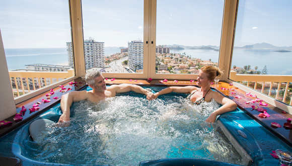 Das Poseidon La Manga Hotel & Spa liegt im Herzen des Ferienorts La Manga und bietet eine ideale Lage direkt an den Sandstränden der Mittelmeerküste. Genießen Sie die Nähe zum Meer und erkunden Sie die umliegenden Geschäfte, Restaurants und Unterhaltungsmöglichkeiten. Die Lage ermöglicht es Ihnen auch, die natürliche Schönheit der Umgebung zu erleben und verschiedene Wassersportarten zu betreiben.