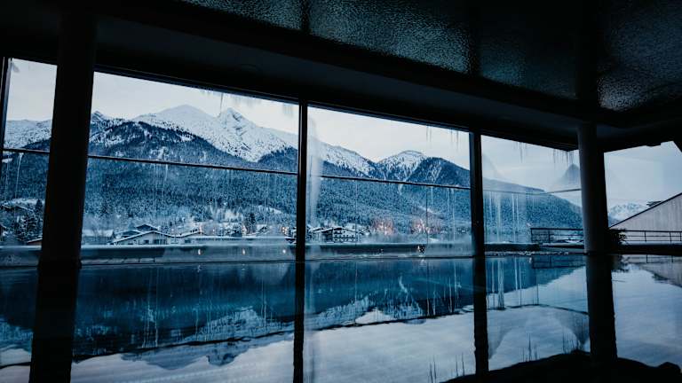 Unser 2.500 m2 große Wellnessbereich über 4 Etagen, für Erwachsene ab 16 Jahren, thront hoch über den Dächern von Seefeld und zeichnet sich durch die einzigartige Kombination aus Tradition und Moderne aus. Materialien aus der Region, wie Zirbenholz und Naturstein sind die Basis unserer Wellnessoase. Ein besonderes Augenmerk haben wir auf ausreichende Liege- und Rückzugsmöglichkeiten gelegt, sodass Sie als Gast selbst bei voller Belegung Ihren Wellnessurlaub in Ruhe genießen können. Neben Panorama Indoor-Pool, Saunawelt, Aroma-Dampfbad, Beauty- und Massage-Center sowie großzügiger Ruhebereichen mit Wasserbetten finden Sie auch ein eigenes Gymnastik- und Fitnesscenter sowie eine Liegewiese auf unserer Dachterrasse mit herrlichem 360° Panoramablick auf das Karwendel- und Wettersteingebirge bis hin zu den Stubaier Alpen. Außerdem bieten wir unseren Gästen sämtliche kostenlose In-und Outdoor Aktivitäten, ob geführte Wanderungen, Radtouren, Nordic Walking oder Meditationen und Entspannungsübungen. Gerne können Sie sich jederzeit an der Rezeption kostenlos Nordic Walking oder Wanderstöcke ausleihen.