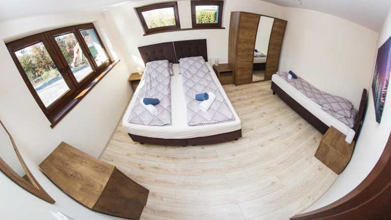 Die Ferienwohnung besteht aus einem separaten Schlafzimmer, einem Badezimmer und einem Wohnzimmer.