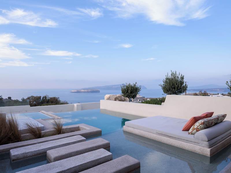 Das Potnia Theron Suites liegt auf einem Hügel in Akrotiri und bietet einen beeindruckenden Blick auf die Ägäis und die Caldera. Die Inselhauptstadt Fira ist etwa 15 km entfernt und der internationale Flughafen Santorin liegt in einer Entfernung von 12 km. Der Hafen Athinios ist nur 13 km entfernt. In der Umgebung des Hotels können Sie den Strand besuchen, der etwa 2,4 km entfernt ist, oder die Stadt Akrotiri erkunden, die ca. 4 km entfernt liegt.