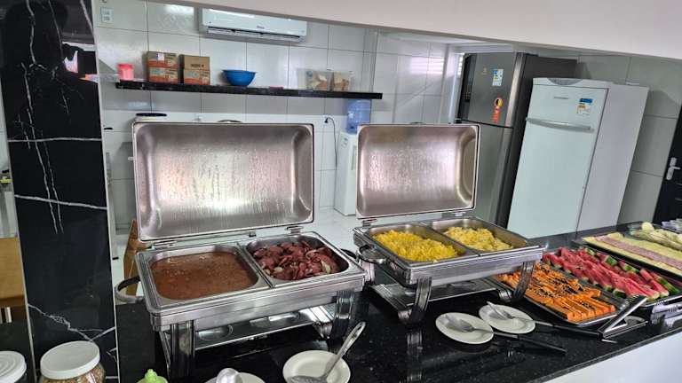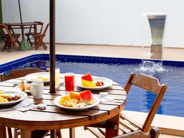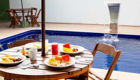 Das Hotel Pousada Arco Iris Fortaleza ist eine ideale Wahl für einen entspannten Strandurlaub in Fortaleza. Nur 100 m vom schönen Strand Praia do Futuro entfernt, bietet das Hotel eine angenehme Atmosphäre und einen Außenpool mit Sonnenterrasse. Die schlicht eingerichteten Zimmer sind klimatisiert und verfügen über TV, Minibar und eigenes Bad. Morgens erwartet Sie ein leckeres Frühstücksbuffet und das Hotel bietet auch Grillmöglichkeiten für Gäste, die ihre eigenen Mahlzeiten zubereiten möchten. WLAN nutzen Sie kostenfrei und Ihr Fahrzeug können Sie kostenlos auf dem Parkplatz des Hotels abstellen.