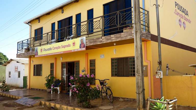 Die Pousada Corazao Sagradao in Abadiânia ist eine charmante Unterkunft, die klimatisierte Zimmer mit kostenfreiem WLAN und Zugang zu einem schönen Garten und einer Terrasse bietet. Das kontinentale Frühstück am Morgen sorgt für einen guten Start in den Tag, und die Gemeinschaftslounge lädt zum Entspannen ein. Der Flughafen Santa Genoveva/Goiania ist ca. 79 km entfernt, und die Unterkunft bietet einen kostenpflichtigen Flughafentransfer an.
