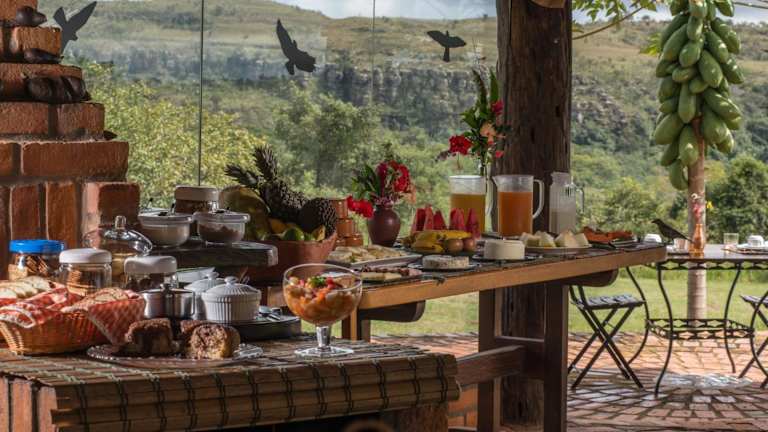 Genießen Sie jeden Morgen ein köstliches Frühstücksbuffet im Pousada do Parque. Das Buffet bietet eine Auswahl an frischem Obst, Brot und Aufschnitt, um Ihren Tag perfekt zu beginnen. Das Restaurant der Pension serviert regionale und internationale Gerichte zum Mittag- und Abendessen, so dass Sie auch vor Ort kulinarisch verwöhnt werden.