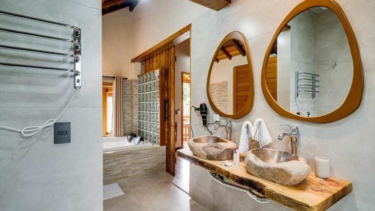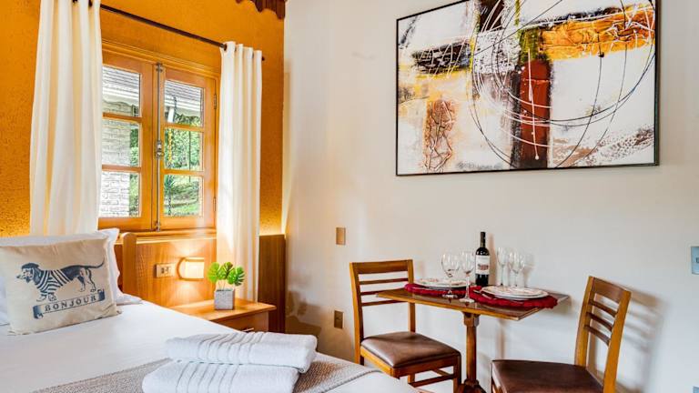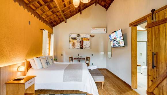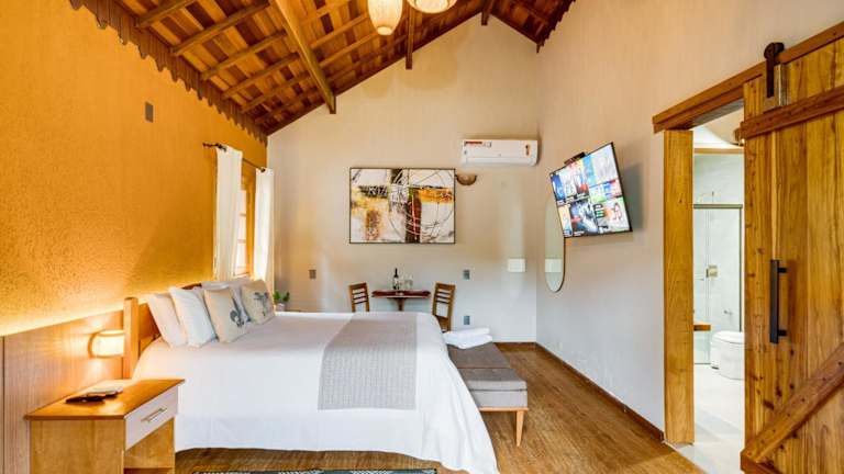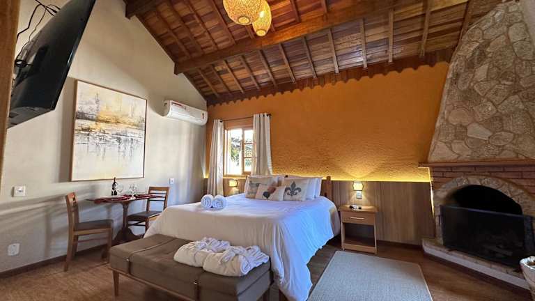 Die Pousada bietet Chalet-Unterkünfte, die über einen eigenen Kamin verfügen. Jedes Chalet ist ausgestattet mit einem Flachbild-TV, einer Minibar und einem eigenen Bad mit Warmwasserdusche.