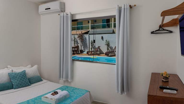 Die 25 Zimmer der Pousada Lua e Mar sind klimatisiert und bieten Ihnen Komfort und Entspannung. Jedes Zimmer verfügt über Sat-TV, eine Minibar und eine Holzausstattung, die eine warme und einladende Atmosphäre schaffen. Einige Zimmer verfügen über eine Terrasse mit einer Hängematte, auf der Sie sich zurücklehnen und den Blick auf den Garten genießen können.