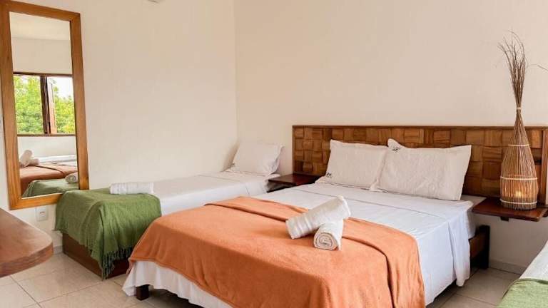 Die Zimmer der Pousada sind entweder klimatisiert oder mit einem Ventilator ausgestattet. Jedes Zimmer bietet eine Minibar und ein eigenes Bad mit einer Warmwasserdusche, die durch Solarheizung erwärmt wird.