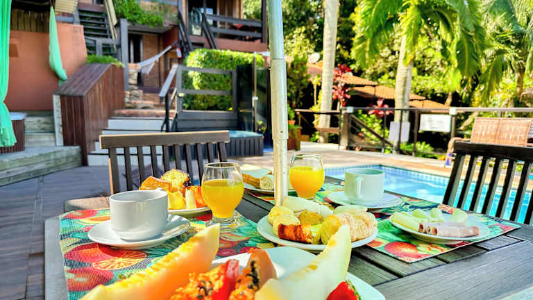Ein Buffetfrühstück wird in der Pousada Palmeiras Bombinhas serviert. Es werden auch spezielle Speisen für besondere Ernährungsbedürfnisse auf Anfrage angeboten. Des Weiteren sind Kindermahlzeiten und ein kinderfreundliches Buffet verfügbar.