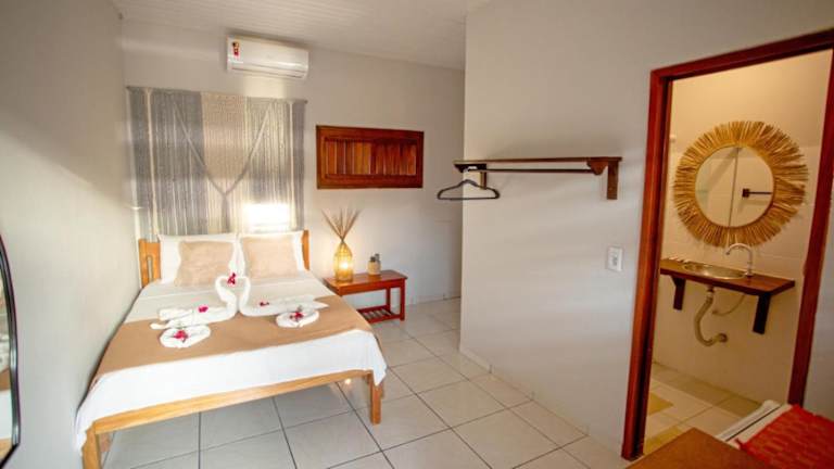 Die Zimmer im Pousada Por do Sol sind gemütlich und bieten alles, was Sie für einen angenehmen Aufenthalt benötigen. Sie verfügen über ein eigenes Bad und eine Minibar. Zur Auswahl stehen Zimmer mit Klimaanlage oder einem Deckenventilator, je nach persönlichen Vorlieben.