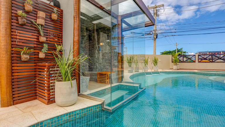 Das Pousada Praia Bela ist eine charmante Unterkunft in Ilhéus, nur 100 m vom Strand entfernt. Hier können Sie sich auf komfortable Zimmer mit Balkon, einen erfrischenden Außenpool und kostenloses WLAN freuen. Beginnen Sie Ihren Tag mit einem köstlichen tropischen Frühstück und entspannen Sie sich tagsüber mit Snacks und Getränken an der hoteleigenen Bar. Die Unterkunft bietet auch kostenfreie Parkplätze und ist günstig gelegen, nur 3 km vom Flughafen Ilhéus/Bahia-Jorge Amado und dem Praia dos Milionários entfernt.