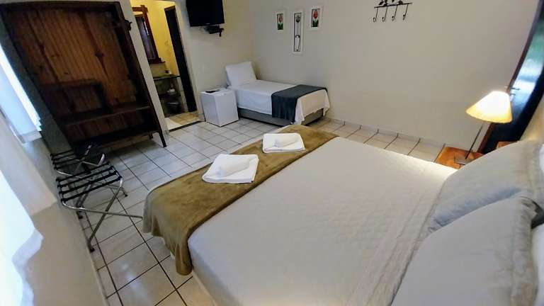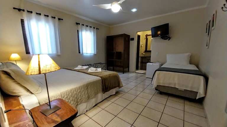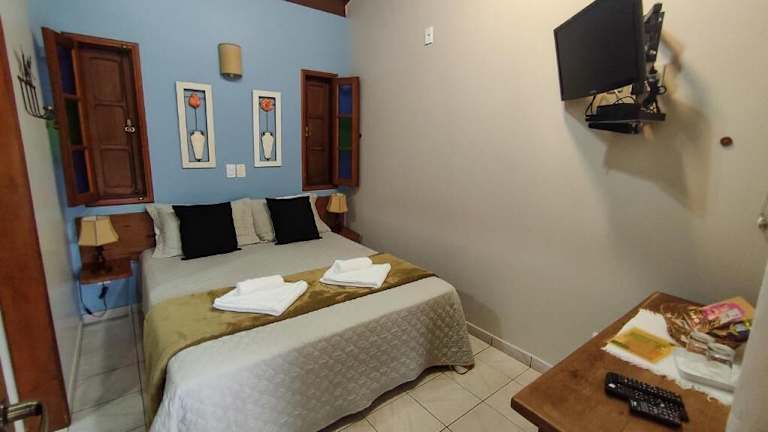 Die Zimmer im Pousada Recanto da Grande Paz sind praktisch eingerichtet und verfügen über einen Deckenventilator. Sie bieten zudem eine Minibar, einen Flachbild-TV und einen Balkon mit Blick auf den Garten. Die Ausstattung sorgt für einen angenehmen Aufenthalt und Komfort während Ihres Urlaubs.