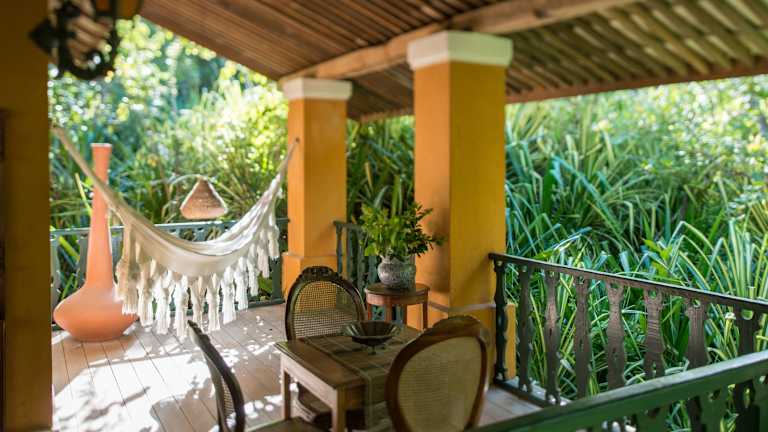 Die Bungalows im Hotel Toca da Coruja sind geräumig und bieten einen offenen Grundriss mit einer stilvollen Einrichtung aus Holzmöbeln. Sie sind mit Klimaanlage, Minibar und CD- und DVD-Player ausgestattet. Die Bungalows bieten zudem einen herrlichen Blick auf die tropischen Gärten und Wälder.