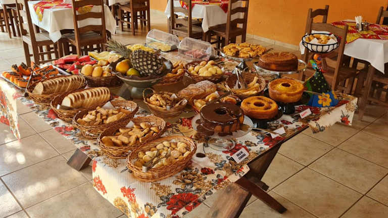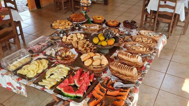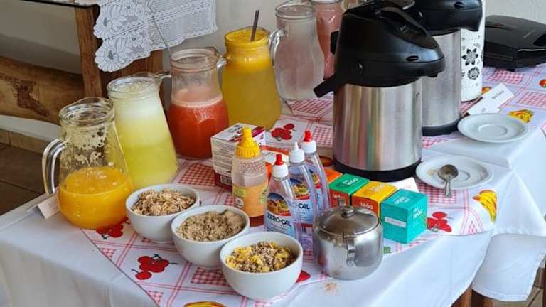 Gäste der Pousada Varandas da Serra können ein reichhaltiges Frühstück in Buffetform genießen. Zu den Verpflegungsmöglichkeiten gehören auch eine Snackbar und ein Café vor Ort.