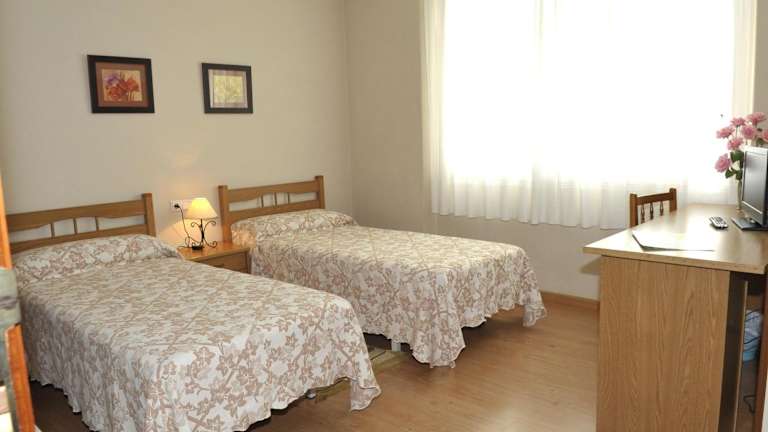 Die Pension PR Nimo ist eine einfache, aber gemütliche Unterkunft in Santiago de Compostela, nur 100 m vom Bahnhof entfernt. Die Zimmer sind schlicht eingerichtet, bieten aber kostenloses WLAN und ein eigenes Bad. Eine Gepäckaufbewahrung ist vorhanden und für Pilger gibt es die Möglichkeit, ihr Fahrrad abzustellen. Die zentrale Lage ermöglicht es den Gästen, Geschäfte und Restaurants in der Nähe zu besuchen und die historischen Sehenswürdigkeiten der Stadt, wie die Plaza del Obradoiro und die Kathedrale von Santiago, in nur 15 Gehminuten zu erreichen.