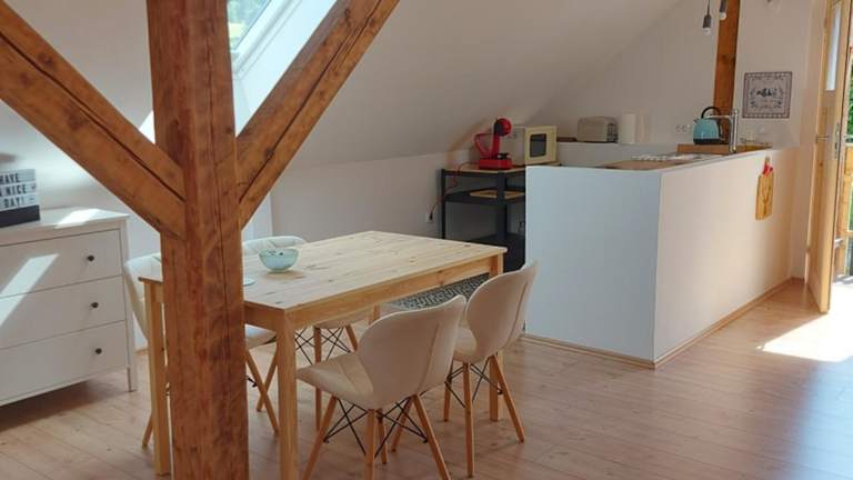 Das Hotel Pr' Šovarjo bietet keine Verpflegung vor Ort an. Sie haben jedoch die Möglichkeit, Ihre eigenen Mahlzeiten in der voll ausgestatteten Küche zuzubereiten. Alternativ können Sie in den nahegelegenen Restaurants lokale Spezialitäten probieren und die kulinarische Vielfalt der Region entdecken.