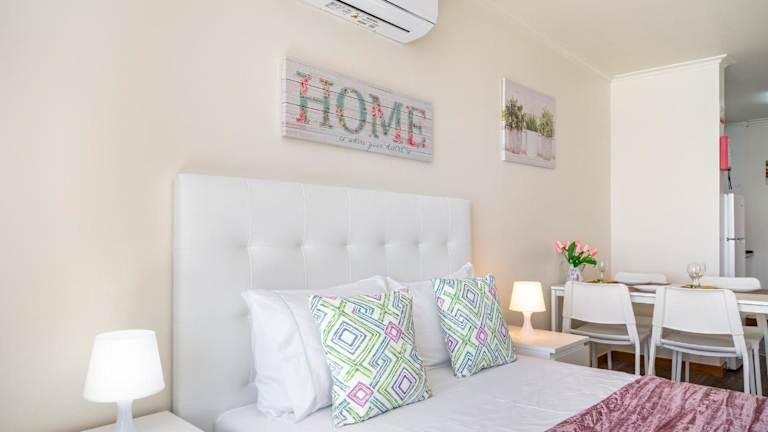 Die klimatisierte Ferienwohnung besteht aus 1 Schlafzimmer, einem Wohnzimmer und einer voll ausgestatteten Küchenzeile, die mit einem Kühlschrank und einer Kaffeemaschine ausgestattet ist. Ein Badezimmer mit Bidet und Haartrockner ist ebenfalls vorhanden. Handtücher und Bettwäsche werden bereitgestellt.