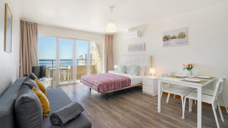Die Ferienwohnung Praia da Rocha, 17 H, Frontal Sea View, Wonderful Studio, Air Conditioning, two Pools, Internet, Parking - Jardins da Rocha by IG umfasst eine saisonale Außenpoolanlage, einen Garten und eine Terrasse. Die Unterkunft bietet kostenloses WLAN und verfügt über einen kostenlosen Privatparkplatz.