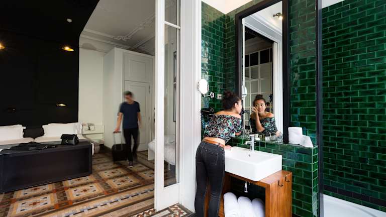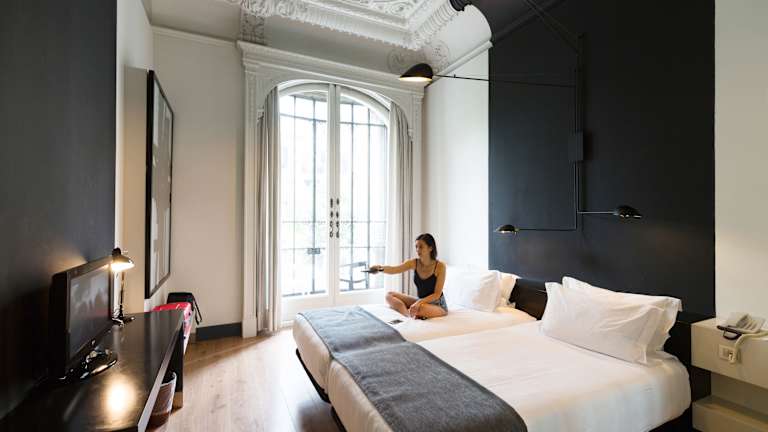 Die Zimmer im Hotel Praktik Rambla beeindrucken mit einem minimalistischen Design und bieten den Gästen ein komfortables und stilvolles Ambiente. Jedes Zimmer verfügt über eine Klimaanlage, kostenfreies WLAN und ein privates Bad mit grünen Fliesen. Ein Safe sorgt für die Sicherheit Ihrer Wertsachen.