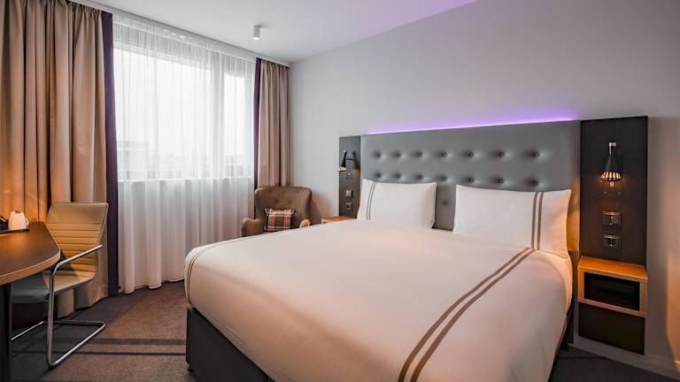 Die Zimmer im Premier Inn Karlsruhe City Am Wasserturm sind komfortabel und klimatisiert. Jedes Zimmer verfügt über einen Schreibtisch, einen Flachbild-TV und ein eigenes Badezimmer. Bettwäsche und Handtücher werden gestellt. Zur Ausstattung gehören auch ein Kleiderschrank und ein Wasserkocher.