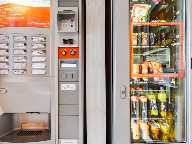 Morgens können sich die Gäste am Frühstücksbuffet stärken. Zusätzlich stehen rund um die Uhr Automaten mit warmen und kalten Getränken zur Verfügung.