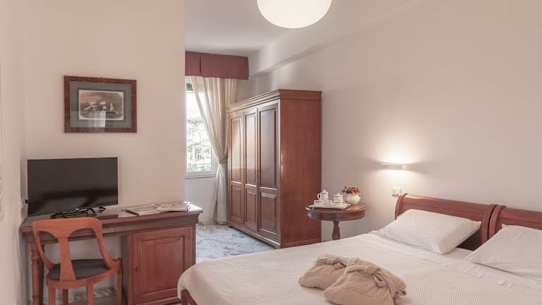 Die Zimmer des Hotels bieten ein angenehmes Raumklima durch Klimaanlage und Heizung. Jedes Zimmer ist mit einem Balkon ausgestattet, einige bieten einen Meerblick. Die Zimmer verfügen über ein Doppelbett, ein Queensize-Bett oder ein Kingsize-Bett, und es können Zustellbetten angefordert werden. Zur Ausstattung gehören ein Safe, eine Minibar, ein TV-Gerät, WLAN sowie ein eigenes Bad mit Dusche, Badewanne und Bidet.