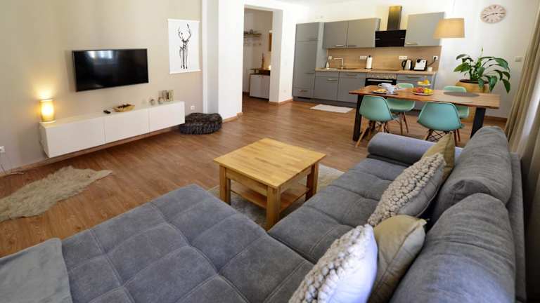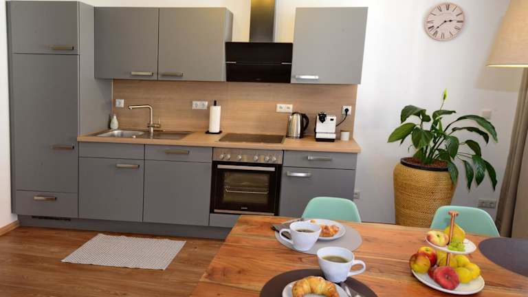 Die Ferienwohnungen verfügen jeweils über 1 Schlafzimmer, ein Badezimmer mit Dusche sowie eine Küche mit Kühlschrank und Geschirrspüler oder Ofen. Handtücher und Bettwäsche werden bereitgestellt. Die Zimmer sind schallisoliert und Nichtraucherzimmer.