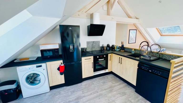 Die Ferienwohnung umfasst 3 Schlafzimmer sowie eine Küche, die mit einem Kühlschrank und einem Geschirrspüler ausgestattet ist. Des Weiteren stehen 2 Badezimmer mit Badewanne oder Dusche, Haartrockner und Waschmaschine zur Verfügung. Die Unterkunft verfügt auch über einen Fernseher.